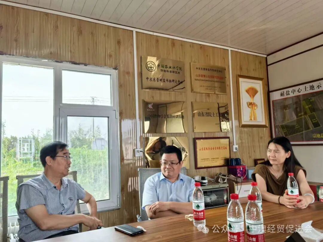 7月19日下午,东营职业学院党委委员、纪委书记、监察专员张洪滨率领生物与生态工程学院一行5人,在东营市现代农业示范区副主任王永利,东营市中澳经济贸易合作促进会会长李家生、监事长牛增琦等的陪同下,到中澳经济贸易合作促进会企业——东营达沃农业开发有限公司调研交流。